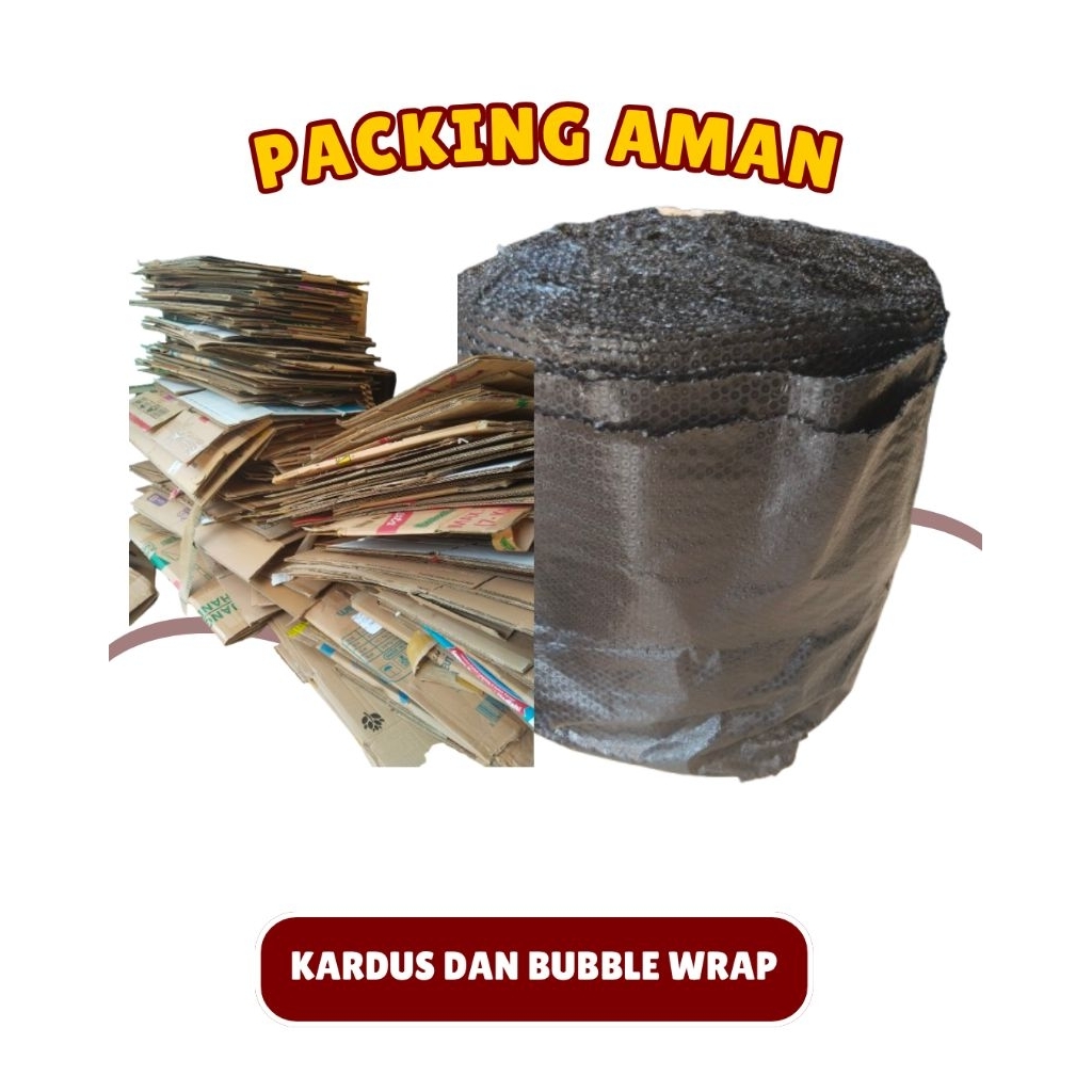 packing extra menggunakan kardus dan bubble wrap. agar paket lebih aman.