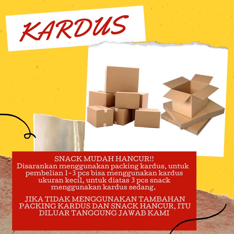 DISARANKAN MENGGUNAKAN KARDUS UNTUK PEMBELIAN SNACK JENIS APAPUN AGAR SNACK SAMPAI DENGAN AMAN!