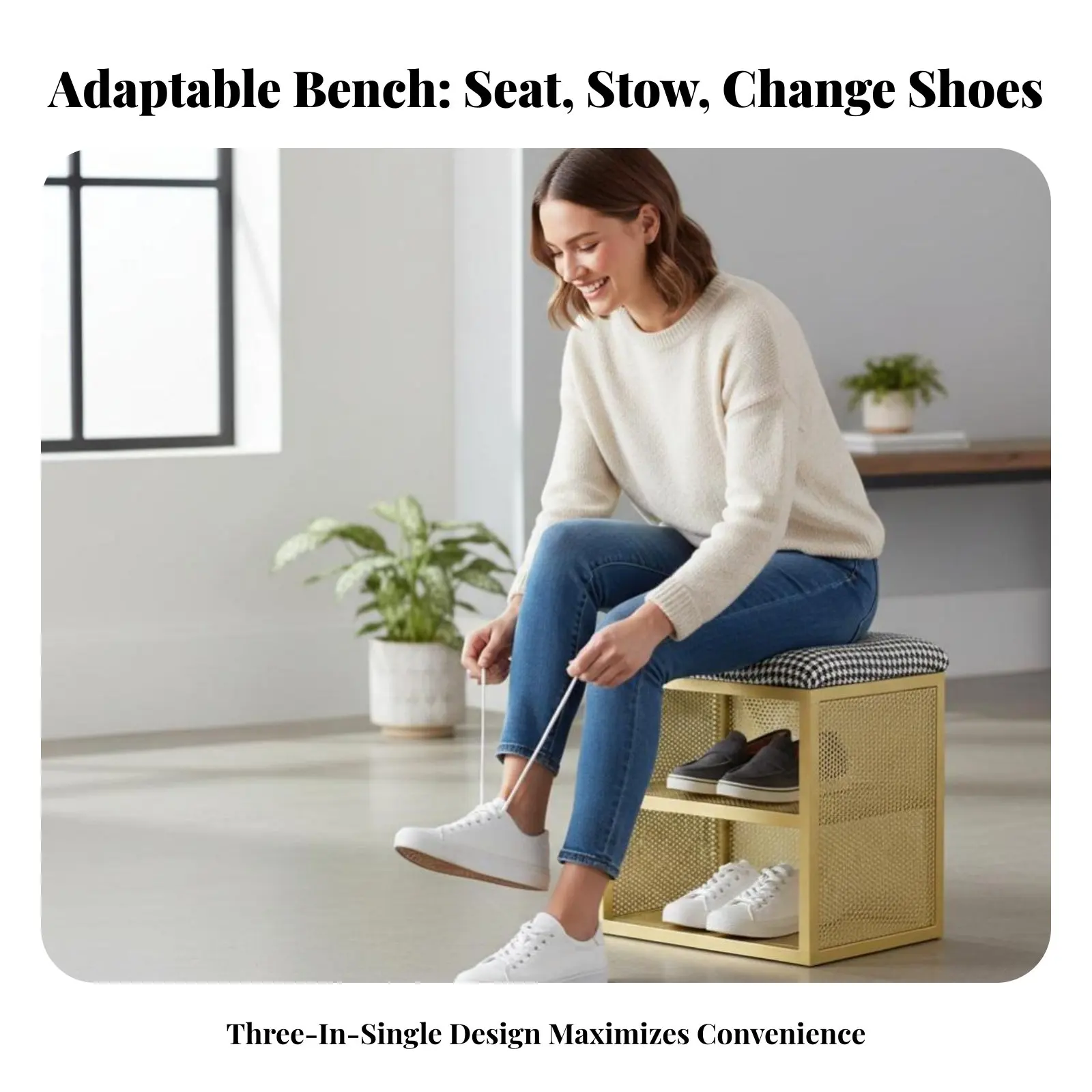 Padded Shoe Storage Bench Multi-Functional Paddinged Shoe Rack Stool Space-Saving Design Sturdy Frame for Families, Living Room