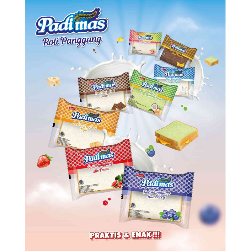 Padimas Roti Panggang merupakan Roti sandwich dengan pilihan isian selai Coklat, Vanila Susu, Pandan Sarikaya, Keju, Mix Fruits, Choco Banana, Es Teler, dan Blueberry.