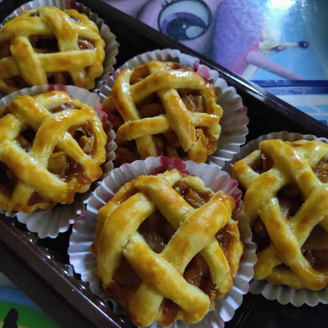 Pai apel berukuran kecil dengan isian apel potong yang gurih segar lemon dan harum kayu manis. 1 pak berisi 5 pcs pai. Pengiriman hanya dengan Gosend. Wajib atc bubble wrap utk pengiriman.