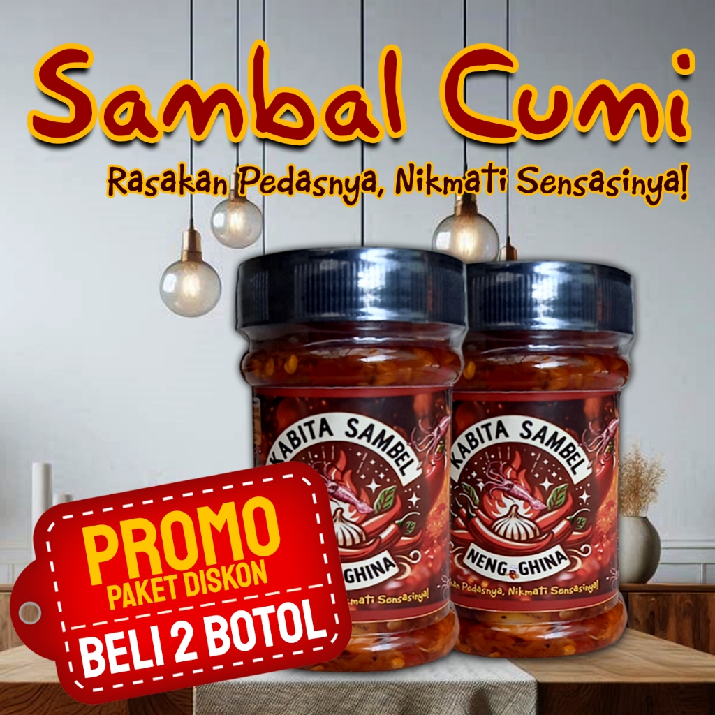 Kabita Sambal Cumi Pedas Neng Ghina menghadirkan cita rasa yang khas pedas, gurih, dan nikmat. Rasakan Gigitan Cuminya ... kini tersedia paket hemat potongan harga untuk membeli 2 Botol Sambal Cumi Pedas