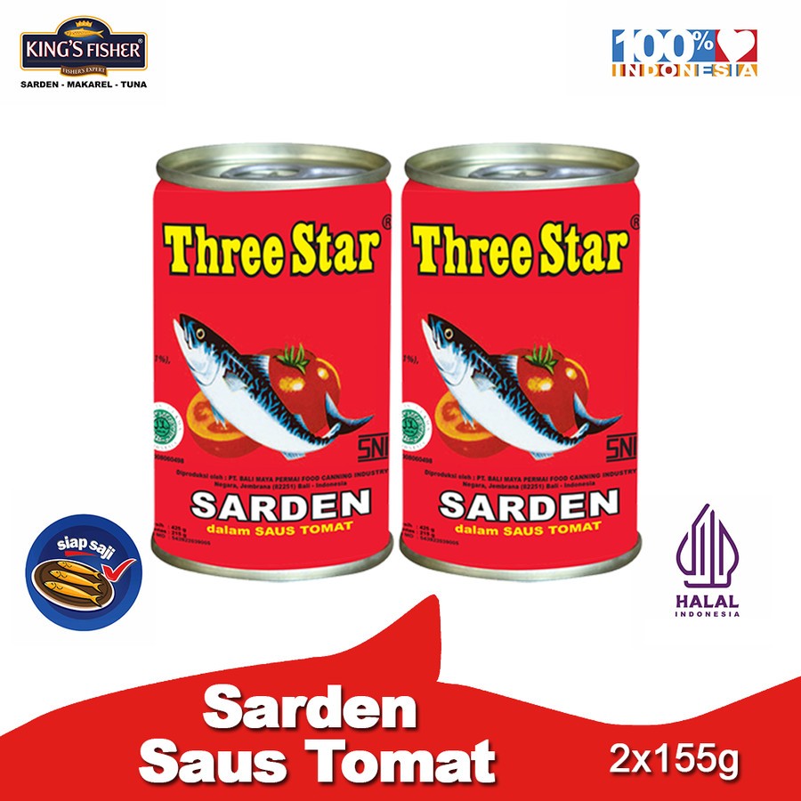 Paket 2 Pcs Three Star Sarden mini saus tomat Makanan Kaleng 155 g