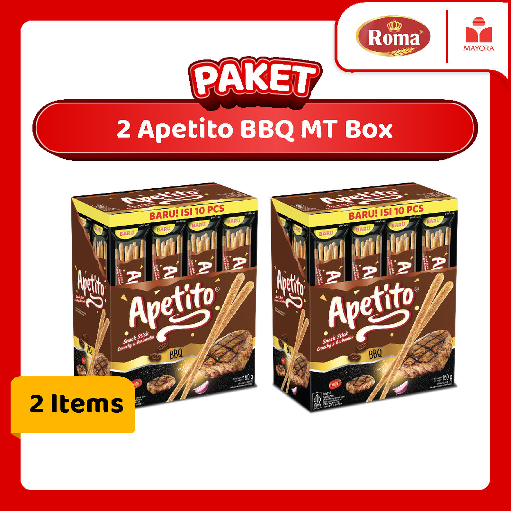 Biskuit Apetito BBQ adalah varian biskuit stik dari Roma yang memiliki rasa barbeque. Biskuit ini terkenal dengan teksturnya yang renyah dan rasa gurih yang lezat, cocok dinikmati sebagai camilan. Selain itu, Roma Apetito BBQ juga terbuat dari bahan-bahan berkualitas.