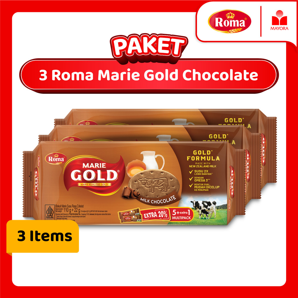 Roma Marie Gold Cokelat adalah biskuit marie yang dilapisi cokelat. Biskuit ini merupakan kombinasi dari biskuit marie yang renyah dengan rasa cokelat yang lezat. Roma Marie Gold Cokelat juga diperkaya dengan susu New Zealand dan telur, sehingga memiliki rasa yang khas dan kaya akan nutrisi, terutama Omega-3.