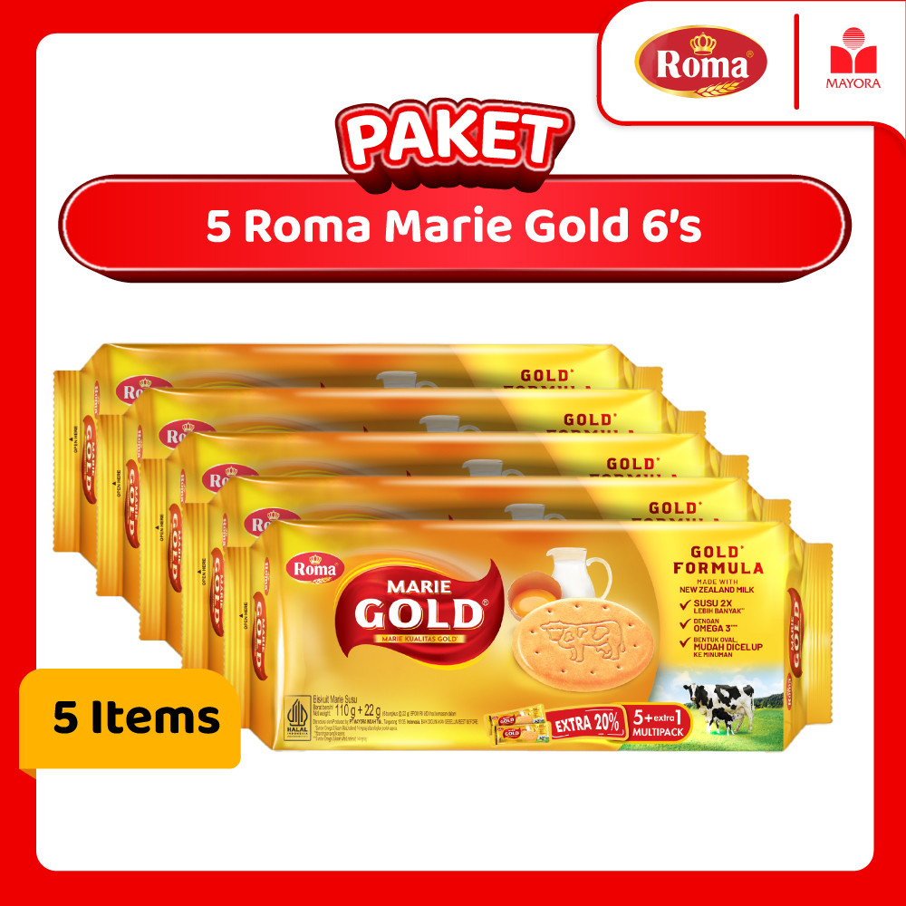 Roma Marie Gold biskuit Marie pertama yang menggunakan susu New Zealand dan olesan telur. Biskuit ini cocok dikonsumsi oleh berbagai kalangan, mulai dari anak-anak hingga dewasa, karena mengandung beberapa nutrisi yang diperlukan oleh tubuh.