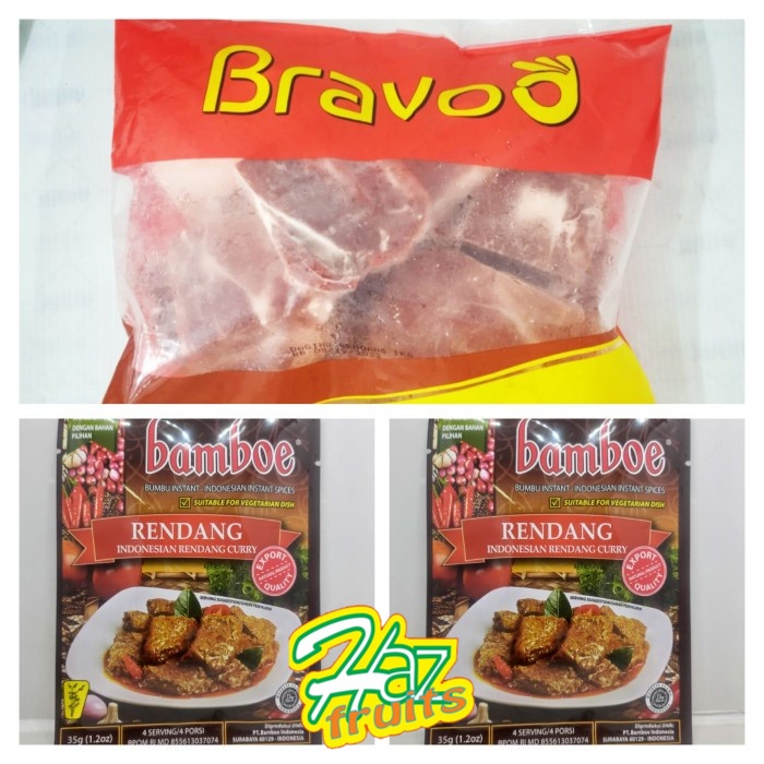 Paket Daging Rendang Bravo 1 KG + Bumbu Rendang bamboe 35 GR
