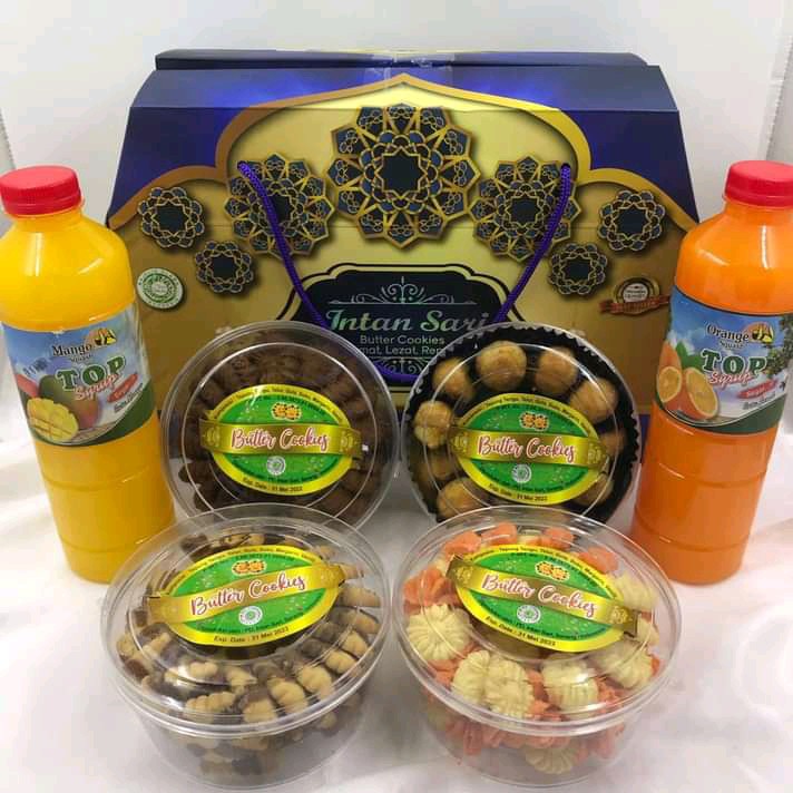 Sambut Hari Raya dengan keceriaan dan cinta,temani keseruan bersama keluarga saat Lebaran, dengan paket Intan sari 2 syrups, dengan 4kukis dan 2 sirup penyegar ;