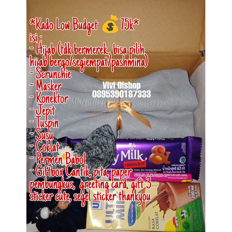 - Hijab (tdk bermerek., bisa pilih hijab bergo/segiempat/pashmina)