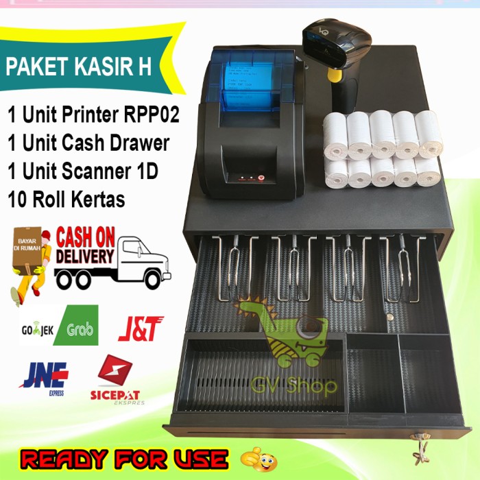 Paket Kasir H Cash Drawer + Printer RPP02 + Scanner + Kertas 10 Roll
