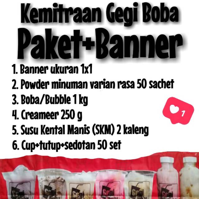 Kami menjual produk minuman Boba/Bubble. Mulai Bubuk minuman dengan banyak varian rasa mulai dari 15 g - 1 kg, Boba/Bubble 1 kg, Creameer super premium, Sedotan, cup mulai 12oz, 14oz, 16oz dan tutup cembung juga tutup datar untuk cup minuman. Adapun paket kemitraan dengan paket hemat sudah bisa menjadi mitra dan bisa langsung berjulan. Yuuuuu gabung