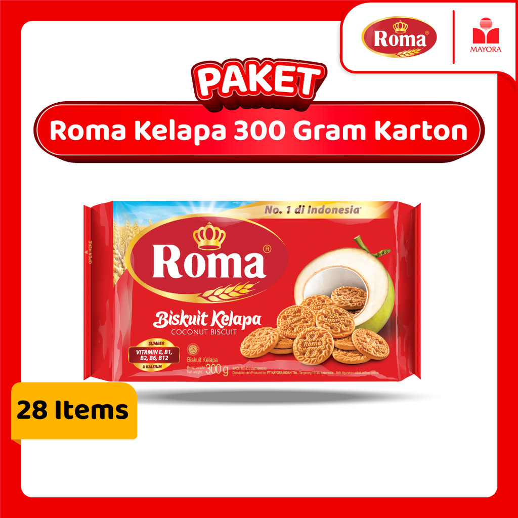 Roma Kelapa 300 gram adalah Biskuit yang terkenal dengan rasa gurih kelapa dan teksturnya yang renyah. Roma Kelapa 300 gram juga diperkaya dengan kalsium dan vitamin B1, B2, B6, B12, serta vitamin E. Biskuit ini cocok dinikmati sebagai teman minum teh atau kopi, atau sebagai camilan kapan saja.