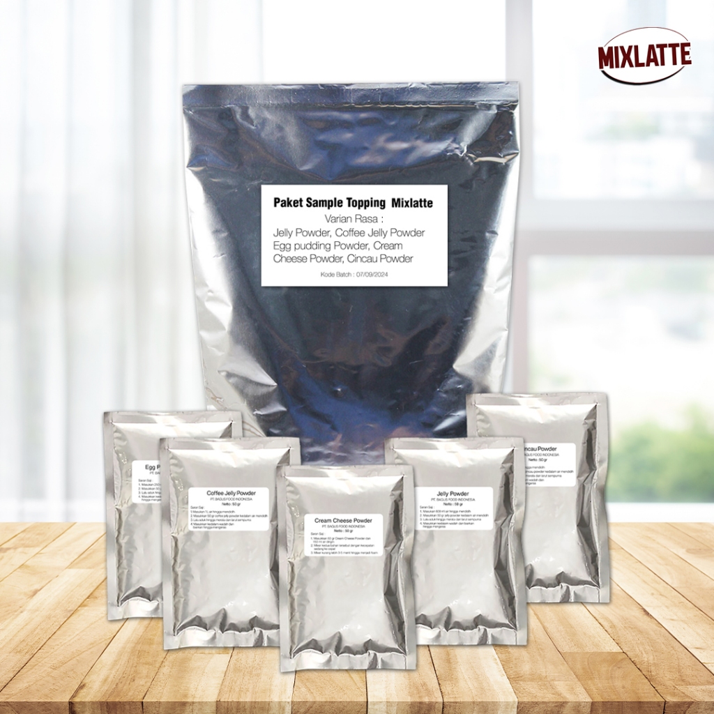 • Paket sample berisikan 5 sachet sample topping powder yang terdiri sebagai