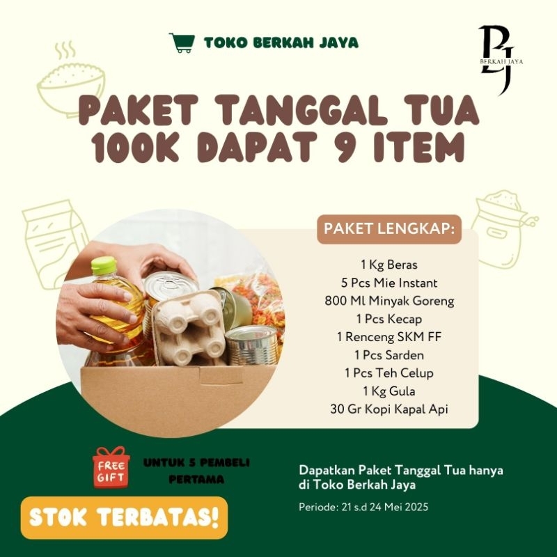 Tersedia 2 Paket Sembako 100K-an dan 50K-an, untuk BJ shoppers di tanggal tua