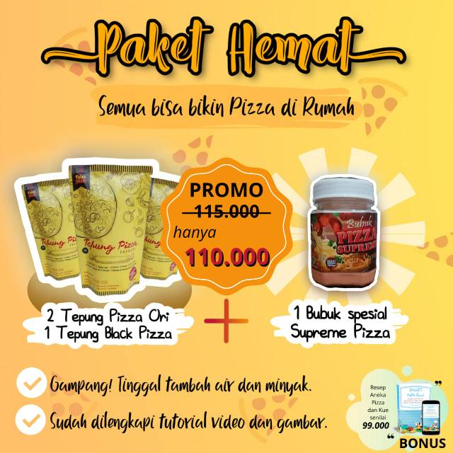 ( Dapat 2 Tepung Pizza Premium Ori+1 Black Pizza+ 1 Bubuk Spesial Pizza Supreme )