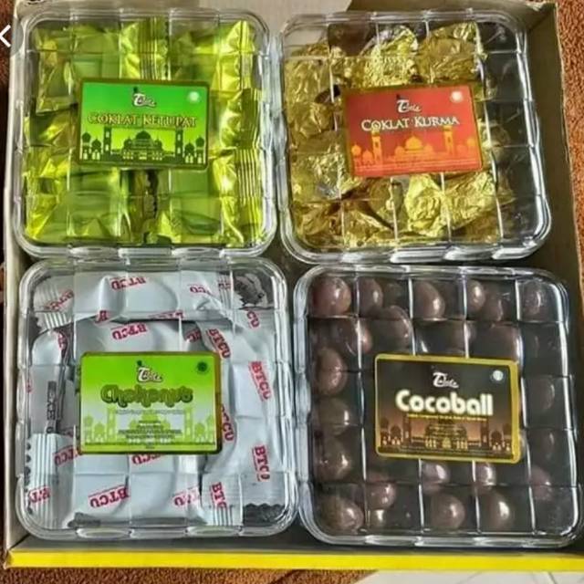 95rb Isi 4toples, coklat ketupat full coklat, coklat kurma, chokonut vanilla, coklat isi biscuit.