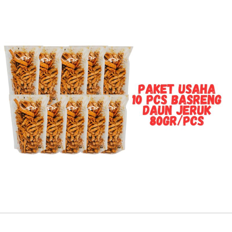Bakso ikan digoreng hingga kering atau biasa disebut basreng ditaburi beberapa varian bumbu dan daun jeruk original,memiliki rasa yang gurih dan cocok banget untuk camilan dirumah ataupun untuk pendamping makanan lainnya