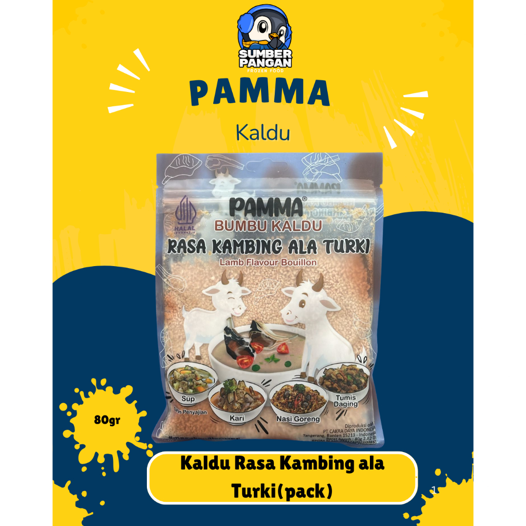 Pamma Kaldu Pack adalah bumbu kaldu bubuk yang tersedia dalam berbagai rasa, termasuk sapi wagyu, ayam kampung, jamur, dan lainnya. Produk ini dikemas dalam bentuk sachet atau pouch berbagai ukuran (40g dan 80g). Pamma Kaldu Pack cocok untuk berbagai masakan, seperti sup, nasi goreng, sayur, daging, dan pasta. Produk ini juga telah bersertifikasi halal dan BPOM.