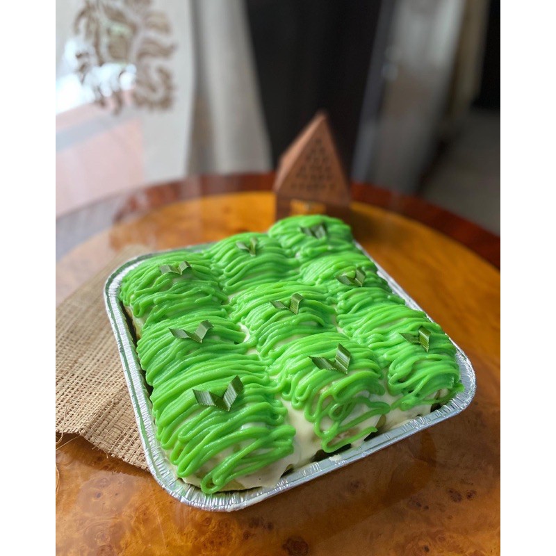 - Roti gulung pandan berisi srikaya pandan dengan tambahan topping creamcheese dan srikaya pndan diatasnya
