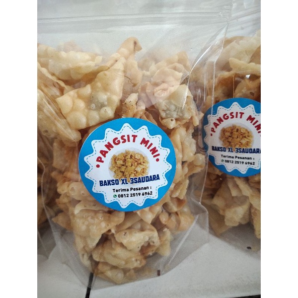 Pangsit untuk toping makan bakso mie ayam yang ukurannya di perkecil sehingga pas untuk camilan disegala aktifitas maupun untuk lauk atau teman makan yan enak dan lezat.
