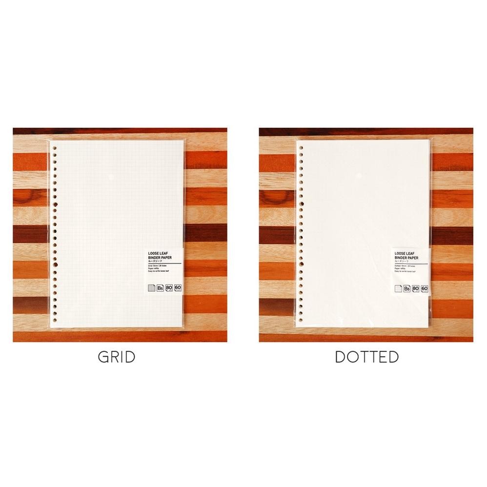 chat admin untuk memastikan ketersediaan stock ya... Kertas loose leaf berwarna putih gading ini adalah teman setia bagi coretan tanganmu. Tulis sepuas hati dan isi ulang binder-mu jika sudah habis. Pilihan format grid dan dot bisa di mix-and-match dengan kertas bergaris untuk memberi kebebasan lebih dalam mencatat. Bahan kertas nyaman ditulisi dengan pena dan pensil, cocok untuk kebutuhan kuliah dan kerja.