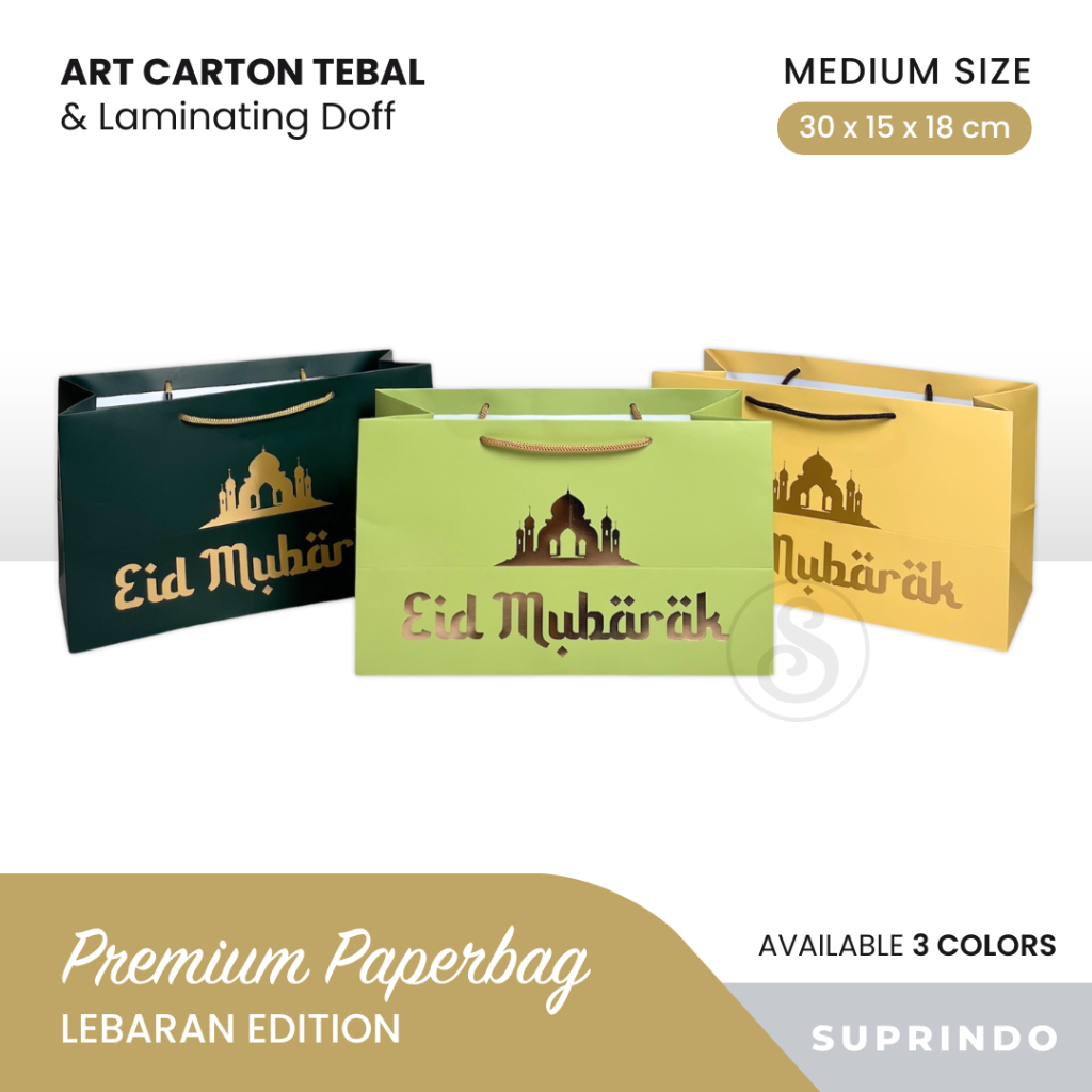 Paper bag premium yang kuat, tebal, dan tidak mudah robek. Tersedia dalam tiga warna yang menarik. Sangat cocok digunakan sebagai tas hampers, souvenir, 4 buah toples bulat 500 gram, bingkisan, kue kering, kue brownies, dan lain lain.