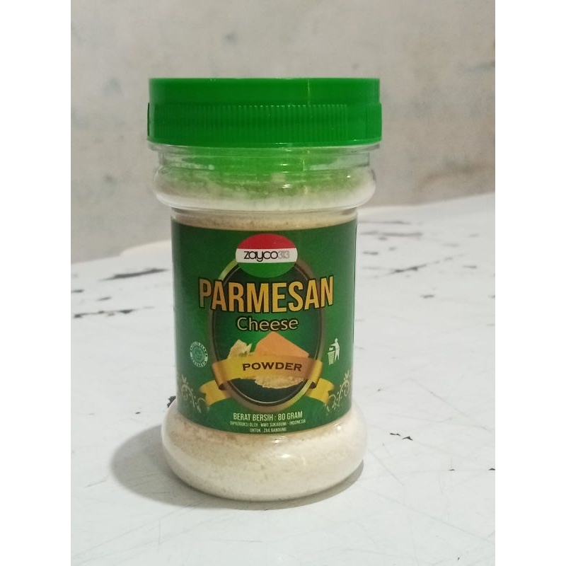 Parmesan Cheese, Memiliki aroma yang strong, cocok sebagai topping pasta, omelette ataupun topping snack seperti pisang goreng. Komposisi : Grated Parmesan Cheese.