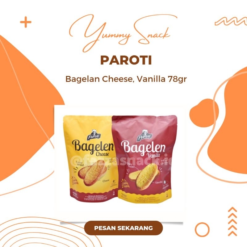 Paroti Roti Bagelen 78 gr adalah salah satu jenis pastry yang memiliki tekstur renyah. Dibuat menggunaan bahan bahan pilihan serta berkualitas, dan diolah secara higienis menggunakan teknologi modern, menghasilkan roti bagelen yang lezat saat disantap. Melalui teknik pemanggangan dan pengeringan yang sempurna membuat roti memiliki tekstur yang renyah ketika digigit. Dengan olesan mentega dan taburan keju parut di atasnya, sehinga roti bagelen memiliki rasa manis gurih yang nikmat dan aroma yang khas. Dikemas menggunakan standing pouch ukuran 78 gram yang terdapat empat kemasan sachet praktis di dalamnya. Cocok dijadikan makanan pendamping saat ngeteh atau ngopi, dan dapat dijadikan bekal cemilan saat perjalanan.