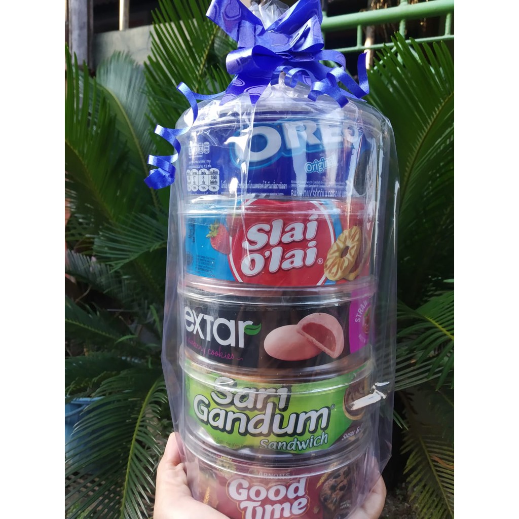 > Parsel Biskuit isi terdiri dari 5 macam biskuit yaitu oreo, sari gandum, nextar, good time dan selai olai.