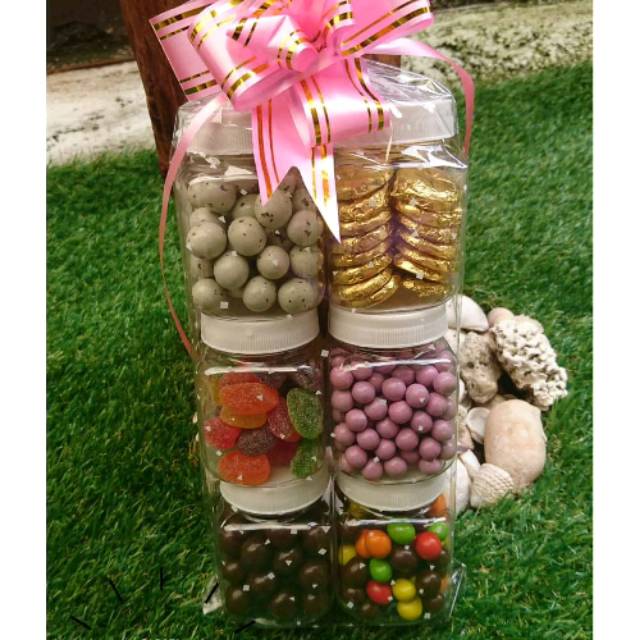 Parsel coklat yg terbuat dari coklat yg d kombinasi sama kacang,kue atw lapisan coklat lagi