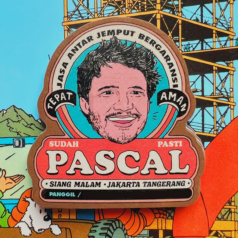 Stiker bergambar jasa antar jemput Bapak Pascal.