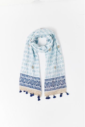 Pashmina Rapsodia Block Print Talla: U y color: acqua