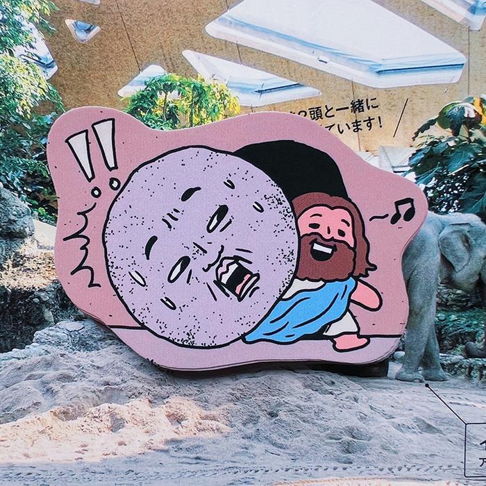 Stiker bergambar adegan Yesus keluar dari kubur.