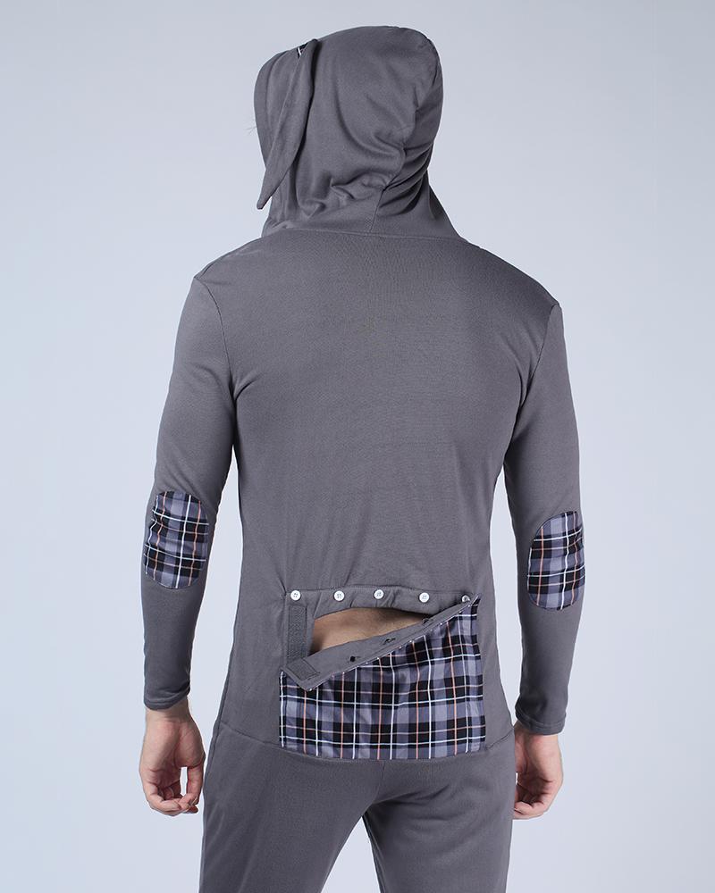 Patchwork Rabbit Ears Hooded Jumpsuit, Dark grey