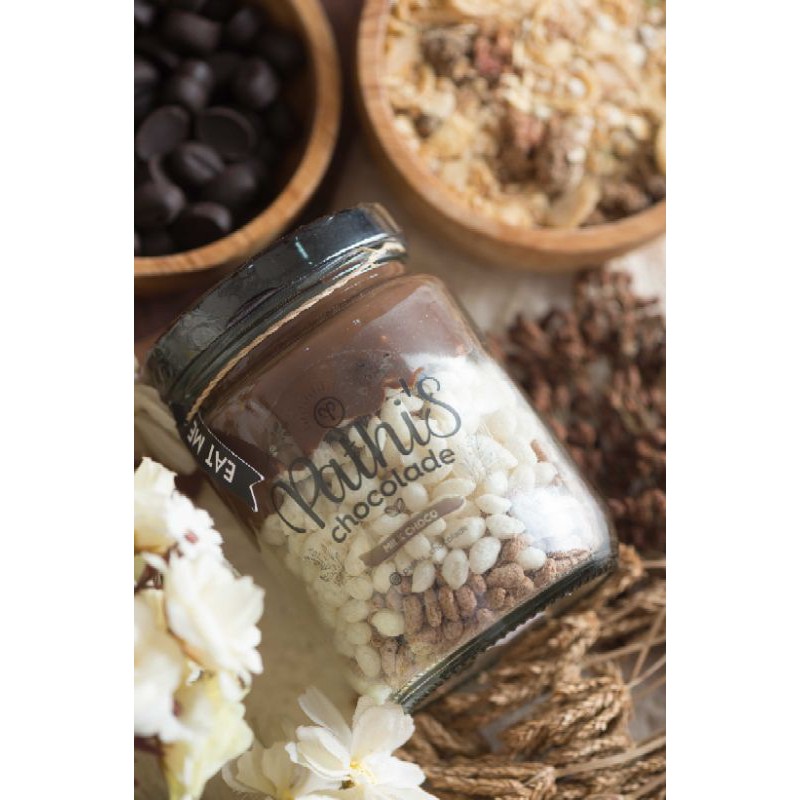 Jadii Pathi's Chocolade adalah coklat lezat yang dipadu dengan renyah nya rice crispy dan disajikan secara unik di dalam jar 〓