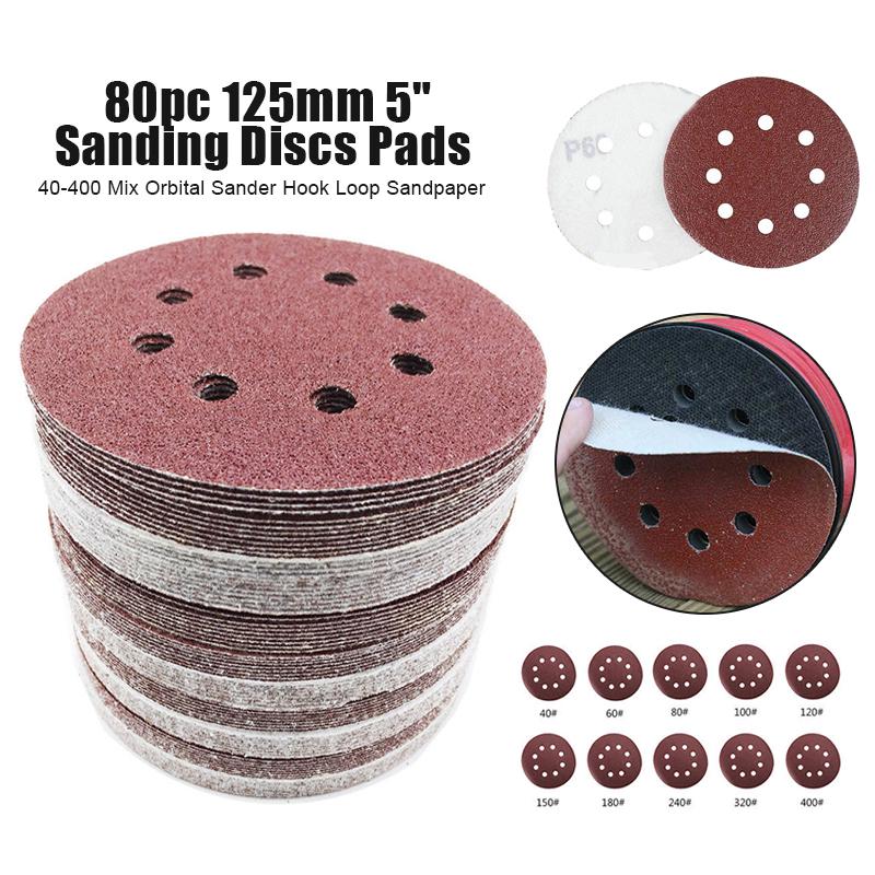 Pdtoweb 80 шт. 125 мм 5 дюймов шлифовальные диски подушечки 40-400 смешанная орбитальная шлифовальная машина с крючком и петлей наждачная бумага