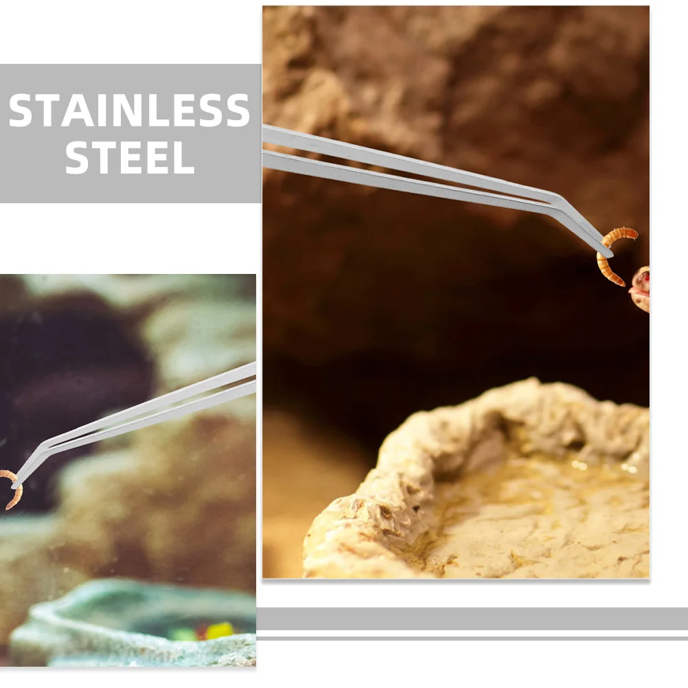 2pcs Tongs Extra Long Metal Tool Aquarium Terrarium Straight Curved Heads Durable Stainless Steel Pet Accessory Gift For