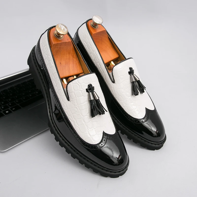 Мужские лоферы из искусственной кожи с кисточками и украшением на низком каблуке, удобная классическая повседневная деловая мужская обувь