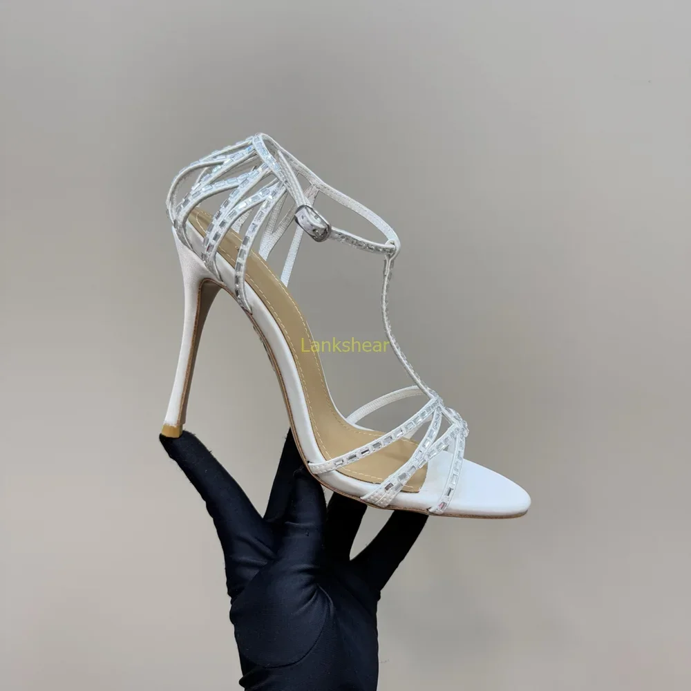 Босоножки на каблуке с кристаллами, пикантные босоножки на тонком каблуке с острым носком и Т-образной завязкой, новые поступления, модная женская современная обувь по индивидуальному заказу