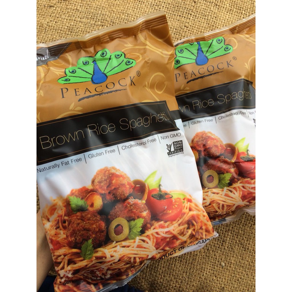 Brown rice spaghetti dari Peacock.
