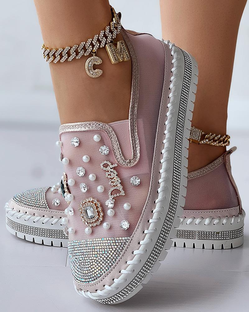 Pearls Rhinestone Decor Muffin Loafers, Pink