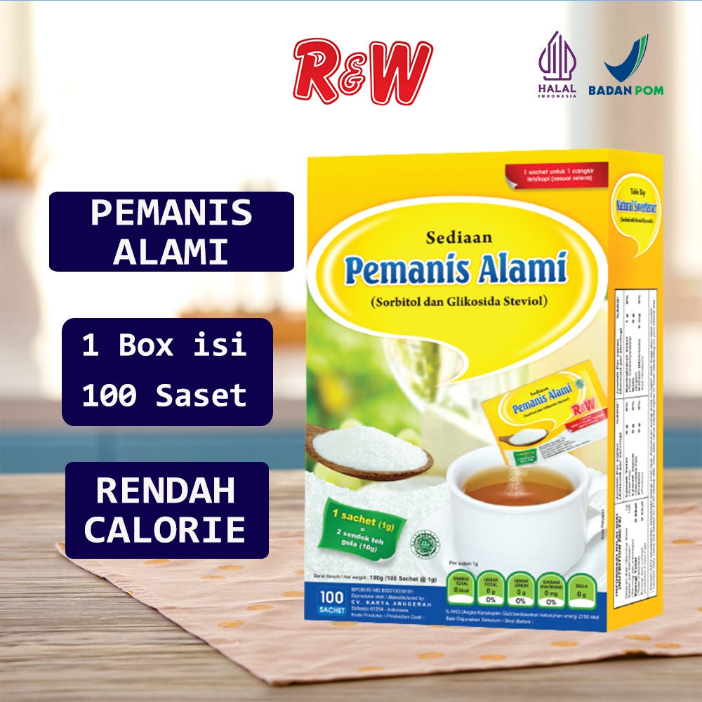 Pemanis Alami Stevia Gula Rendah Kalori Sweetener Rajawali R&W RW 100 Sachet