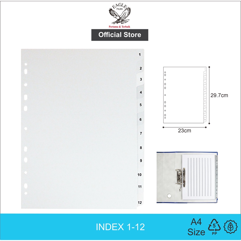 Pembatas Binder EagleFiles Index Divider File Divider Index A4 TABS 1-12/Set