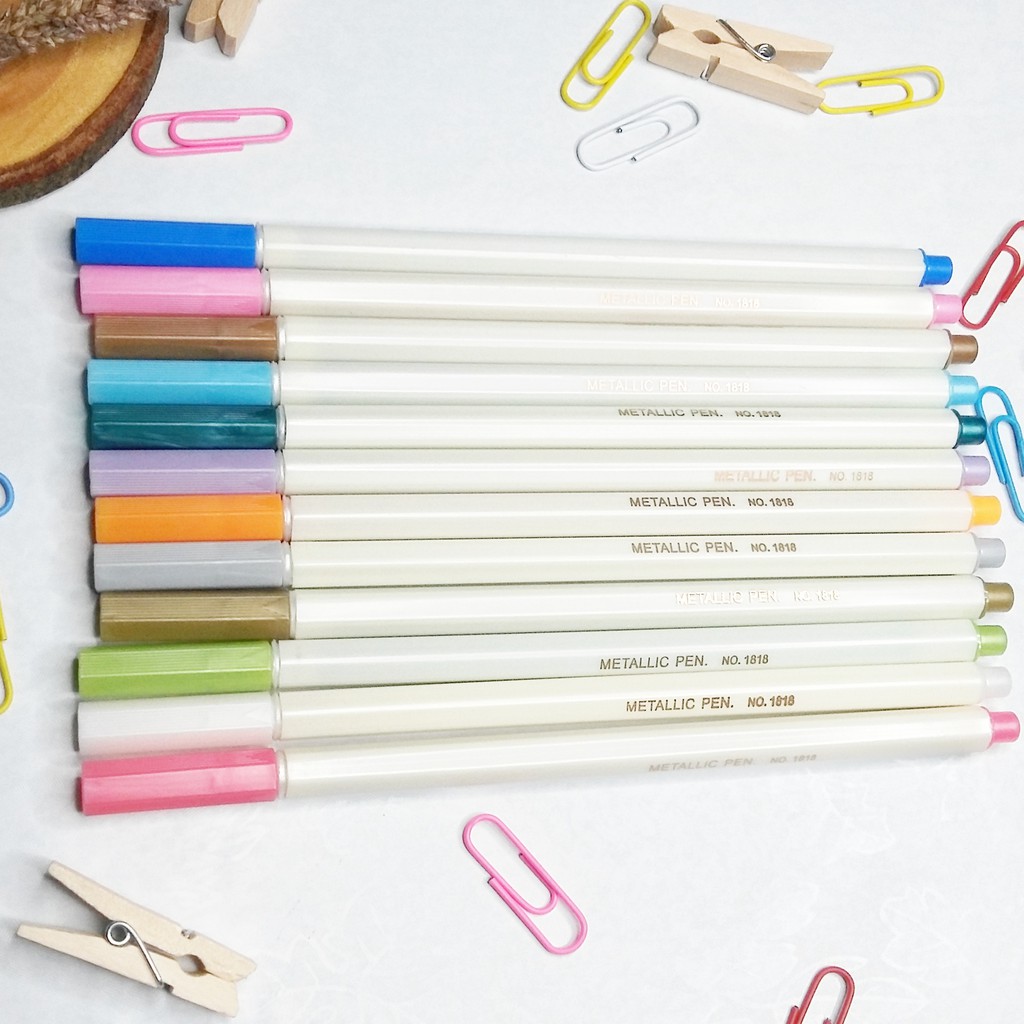 Metallic Pen ini warnanya mirip STA Metallic yaa cuman bedanya kalo yang STA tuu dalam bentuk brush pen kalo yang ini kayak spidol gituu. Warnanya terterguuut sekalii.