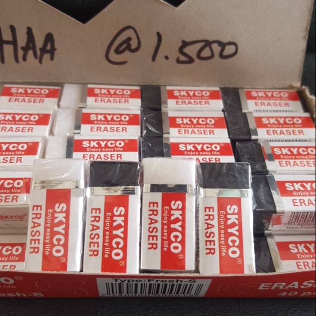 Penghapus skyco tersedia 2 warna hitam dan putih .. enak dipake .. lembut dah bersih ketika menghapus ..