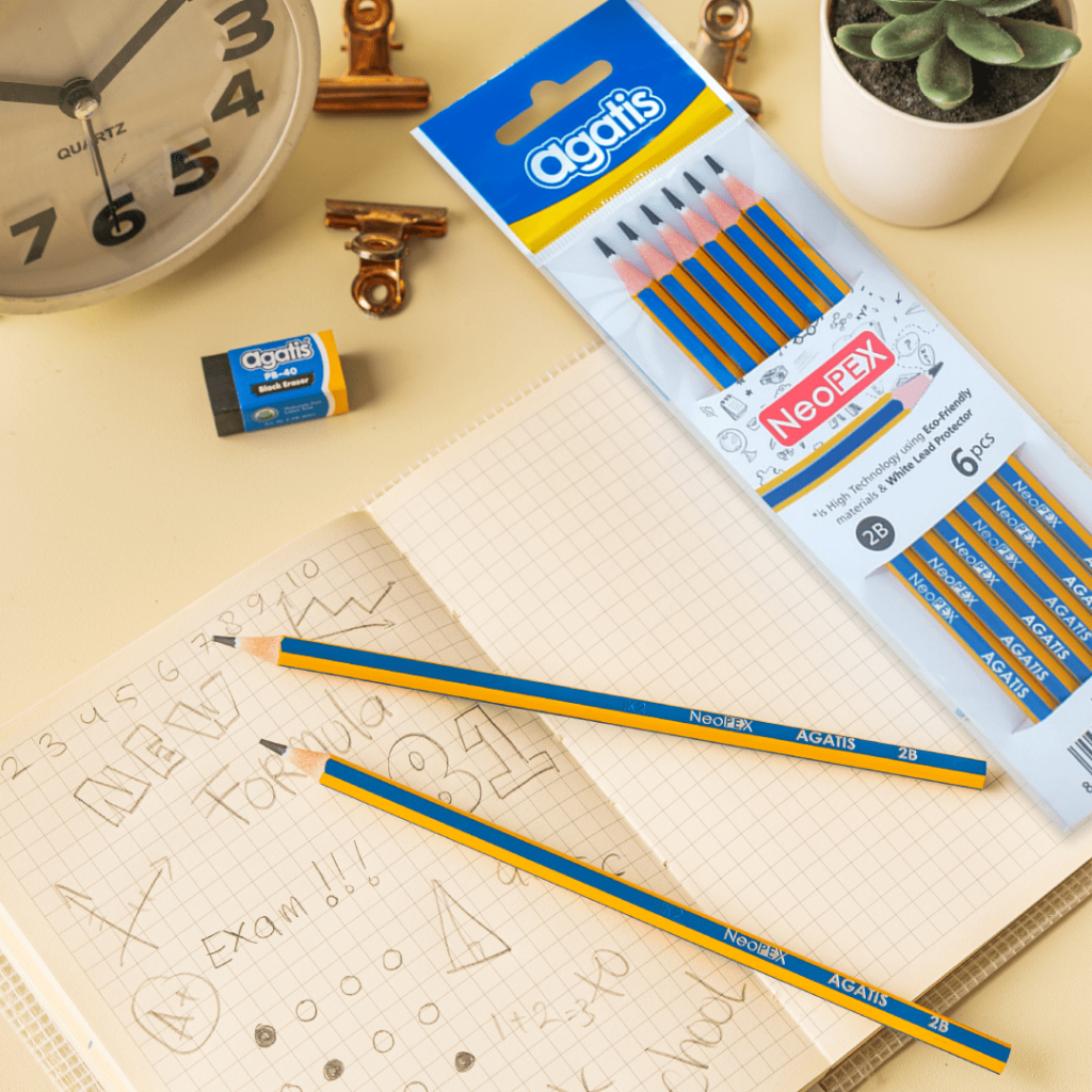 Lebih hemat dan ekonomis dengan kemasan isi 6 pensil yang sudah diraut. Pensil yang telah diraut bisa langsung dipakai tanpa harus ribet cari rautan. Dengan teknologi Neopex, pensil Agatis jadi satu-satunya pensil yang memiliki cincin putih pelindung. Cincin putih berfungsi untuk melindungi isi pensil agar tidak mudah patah dan membuatnya tampak lebih indah. Terbuat dari bahan woodless yang bersifat eco-friendly, pensil Agatis Neopex juga aman dipakai oleh anak-anak.