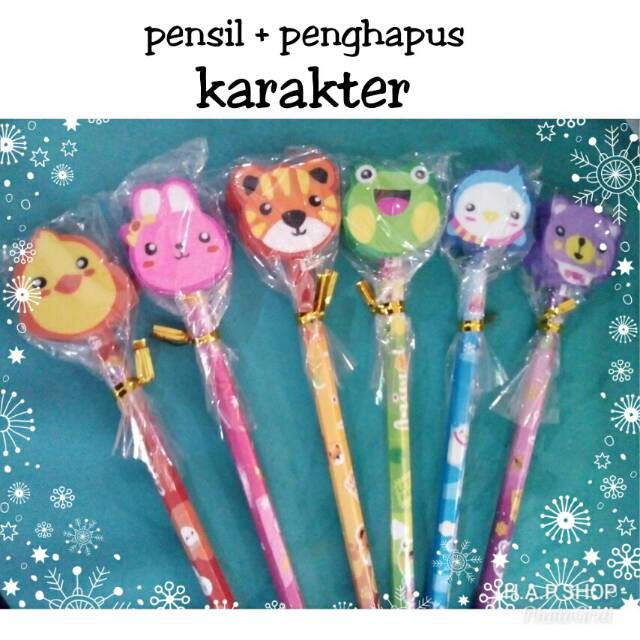 Pensil 2B plus penghapus karakter