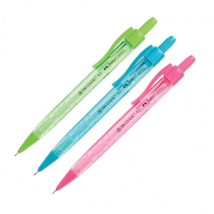 Pensil Mekanik Faber-Castell Tri-click dengan lead 0.5mm. Harga per pcs.