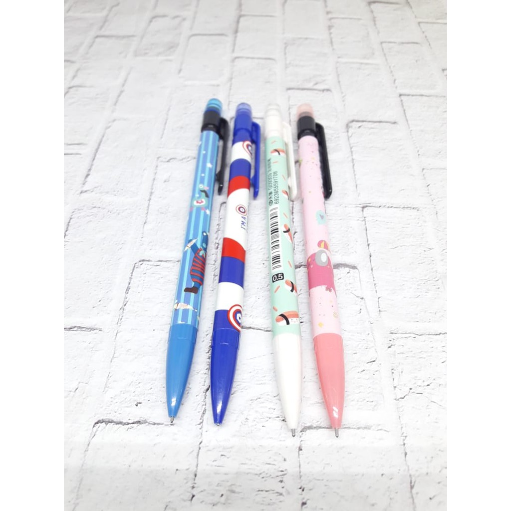 Pensil unik, dimana pada bagian badan pulpen terdapat motif. Membuat koleksi alat tulismu menjadi unik sehingga semangat untuk melakukan aktivitas belajar.