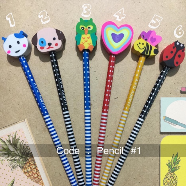 Pensil dengan karakter penghapus diatasnya